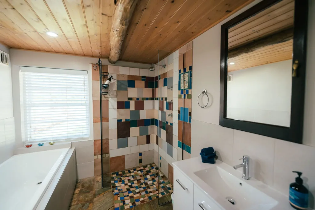 A multi-level rustic chalet with rammed earth bricks and unique timber elements. Chefβs kitchen and large outdoor entertaining area joining private lawns.